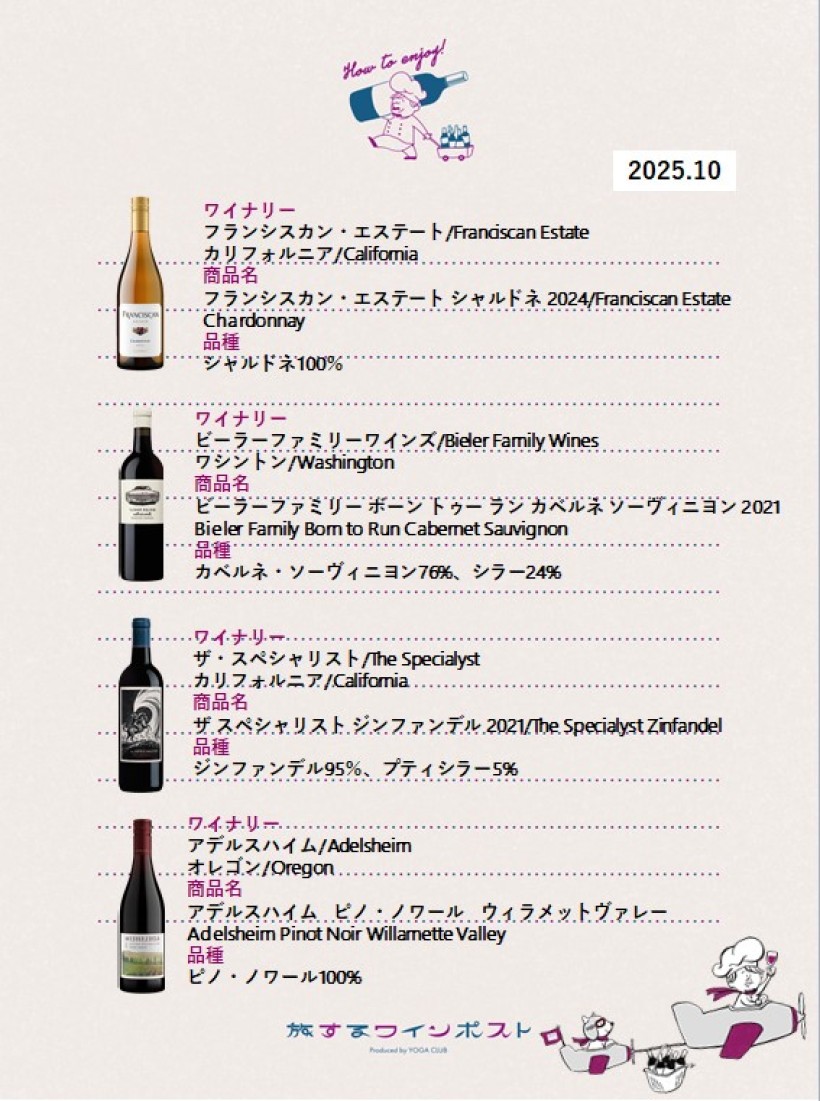 旅するワインポスト(WINE POST) 世界を旅して見つけたワインを、お試しサイズ(100ml)で毎月ポストに届けるワインの定期便サービス(ワインのサブスクリプションサービス)です。世界中のワイン産地から赤ワイン、白ワイン、ロゼワインなどを選んで自宅のポストにお届けします。どんなワインが届くかはお楽しみに。届いたワインの飲み比べを楽しんだり、オンラインでワインの感想を共有しあったり...旅するワインポスト(WINE POST)は誰でも気軽にワインを楽しむことを目的としたサービスです。ワインのギフトやプレゼントにもどうぞ。