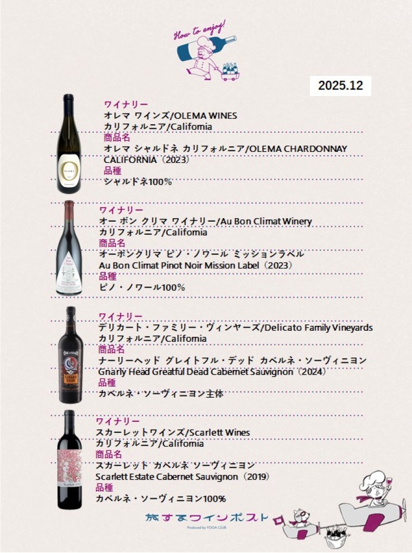 旅するワインポスト(WINE POST) 世界を旅して見つけたワインを、お試しサイズ(100ml)で毎月ポストに届けるワインの定期便サービス(ワインのサブスクリプションサービス)です。世界中のワイン産地から赤ワイン、白ワイン、ロゼワインなどを選んで自宅のポストにお届けします。どんなワインが届くかはお楽しみに。届いたワインの飲み比べを楽しんだり、オンラインでワインの感想を共有しあったり...旅するワインポスト(WINE POST)は誰でも気軽にワインを楽しむことを目的としたサービスです。ワインのギフトやプレゼントにもどうぞ。